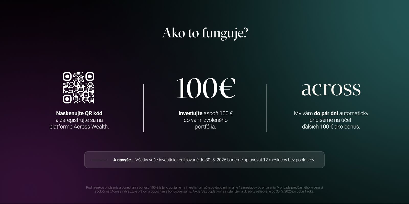 Aj Across vie, že svet investovania sa mení. Už to nie je len o zložitých tabuľkách. Preto prišli s digitálnou platformou Across Wealth, ktorá búra bariéry a demokratizuje prístup k správe majetku. Platforma umožňuje každému – bez ohľadu na to, či má k dispozícii tisíce alebo desiatky eur – investovať na pár kliknutí do profesionálmi zostavených stratégií, ktoré boli doposiaľ prístupné len pre veľkých hráčov. Je to cesta k pasívnemu príjmu a slobode, ktorá vám v konečnom dôsledku umožní užiť si ešte viac takých momentov, aké zažívate u nás v Salamandre.